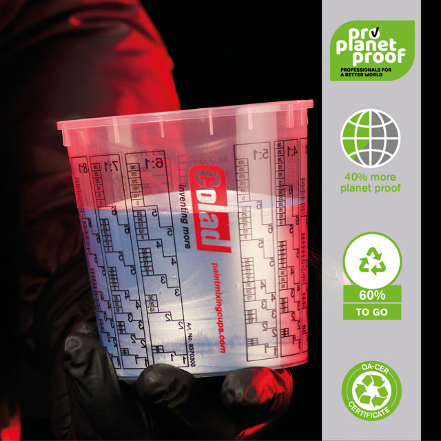 De Turbomix™ Paintsaver™ bestaat uit verschillende grondstoffen zoals 75% gerecyclede Post Consumer plastic.